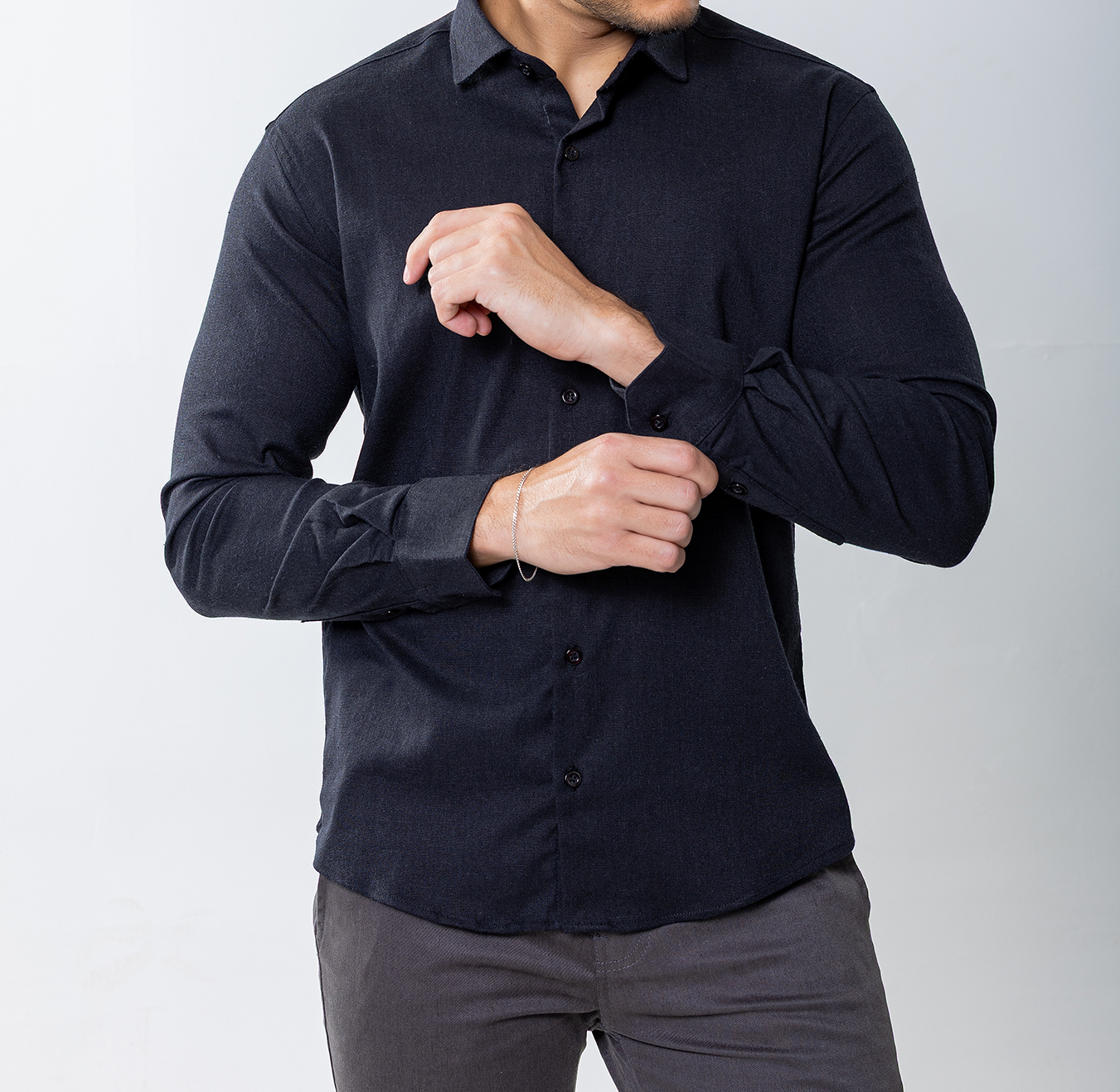 Blend inteligente. Durabilidade, frescor e caimento impecável. Composição: 55% Algodão, 30% Viscose e 15% Linho
